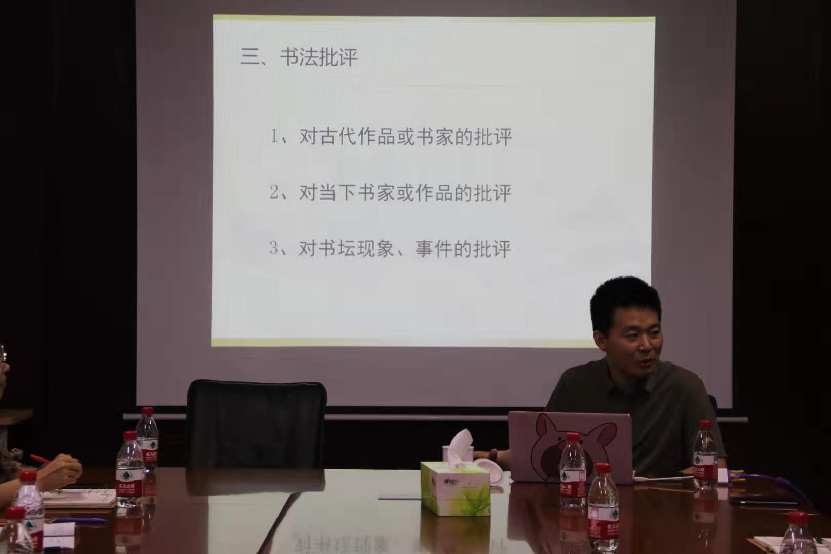 2019年6月6日,于正成报告厅,由陈阳静院长主持,刘恒教授主讲,以《回归艺文兼备的传统书法精神--兼谈展览下的当代书法创作》为主题的学术讲座。
