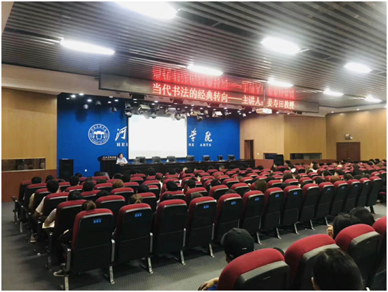 2019年6月4日,中国书法家协会学术委员会委员《书法导报》副总编,河南省书协学术委员会副主任姜寿田教授应邀莅临河北美术学院书法学院为我院师生进行了主题为“当代书法的经典转变”的专题讲座。讲座由书法学院常务副院长侯东菊主持。