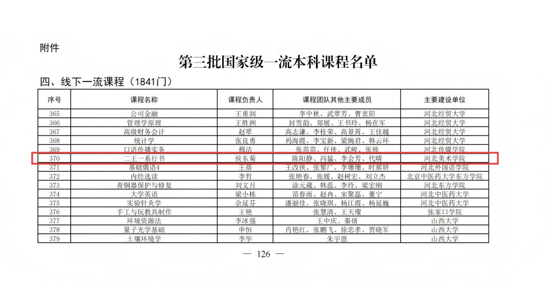 教育部发布《关于公布第三批国家级一流本科课程认定结果的通知》(教高函〔2025〕9号),我院《二王一系行书》成功入选第三批国家级线下一流课程,成为学校在课程建设领域取得的又一重要突破,为学校深化教育教学改革、打造优质课程体系注入强劲动力。